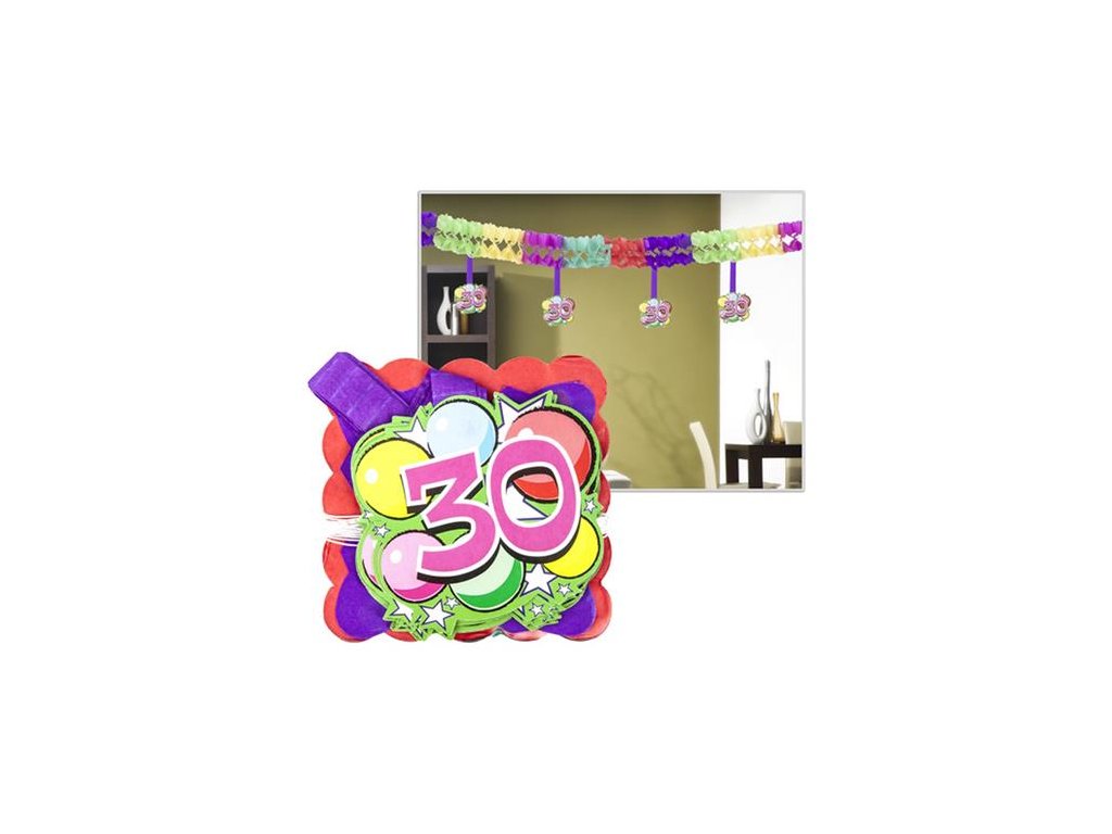 - narodeninová girlanda - 12 ks visiacich dekorácií s číslom 30 - žiarivé farby, s motívom - rozmery: 400x12x12 cm Značka: . Výrobca: Funny Box Kft. Adresa: 2083 Solymár, Mátyás király u.70., Hungary Web: www.partypoint.hu Email: info@funnybox.huDodatočné parametre