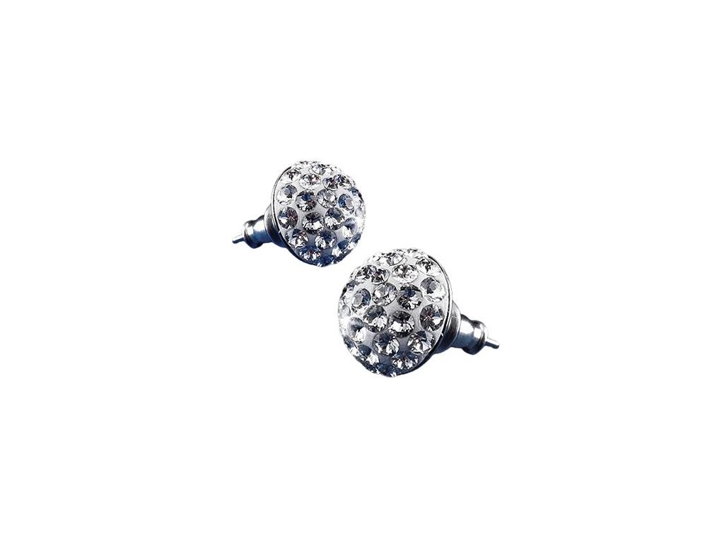 Náušnice, pologuľa, s prírodným bielym SWAROVSKI® krištáľom, 10 mm, ART CRYSTELLA®