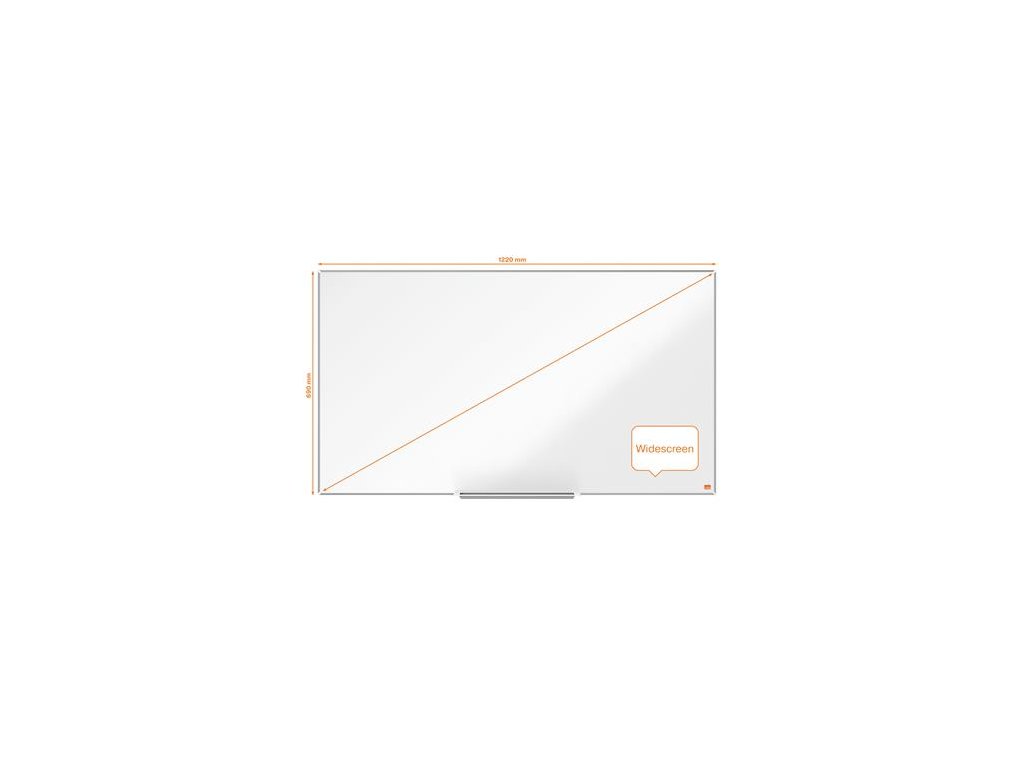 Širokouhlá, smaltovaná magnetická tabuľa s moderným vzhľadom a úzkym rámom a väčšou plochou na písanie. Systém InvisaMount uľahčuje montáž a skryje upevňovacie časti za tabuľu. K tabuli je štýlový držiak na pero s podnosom na uloženie popisovačov a utierok vysoko zmazateľný smaltovaný povrch na časté použitie, záruka na povrch 25 rokov a darček NOBO popisovač. Rozmery tabule sú 122x69 cm