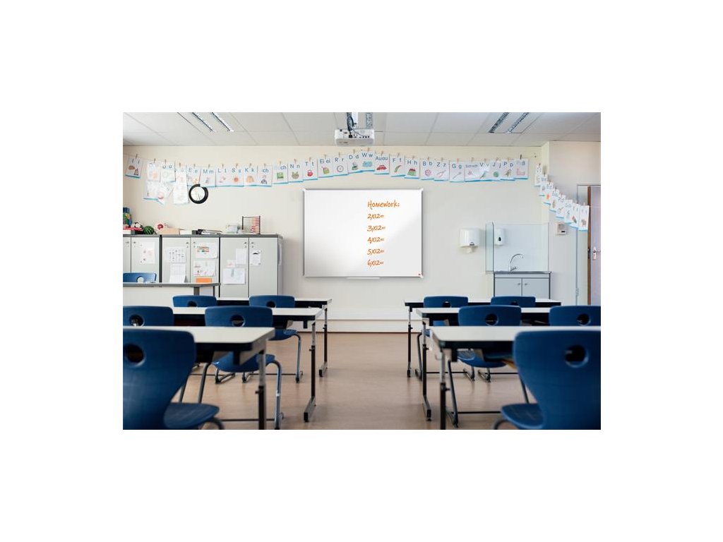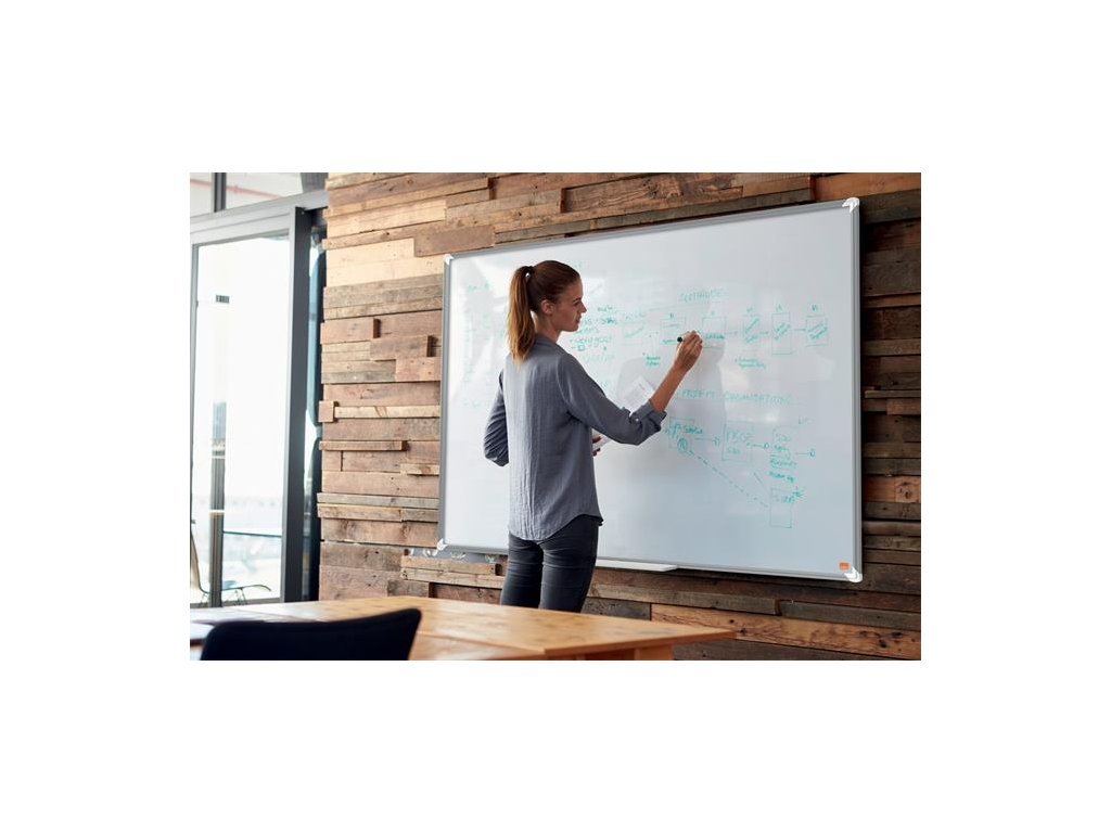 Širokouhlá, smaltovaná magnetická tabuľa s moderným vzhľadom a úzkym rámom a väčšou plochou na písanie. Systém InvisaMount uľahčuje montáž a skryje upevňovacie časti za tabuľu. K tabuli je štýlový držiak na pero s podnosom na uloženie popisovačov a utierok vysoko zmazateľný smaltovaný povrch na časté použitie, záruka na povrch 25 rokov a darček NOBO popisovač. Rozmery tabule sú 180x120 cm
