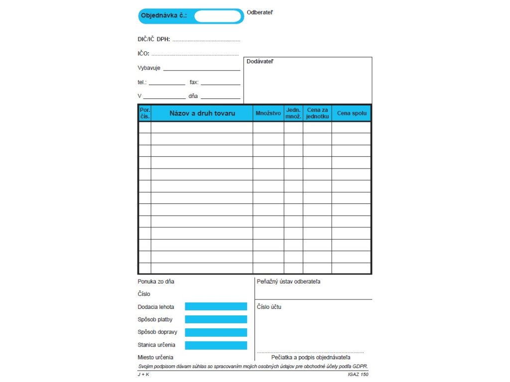 Samoprepisovacie tlačivo - objednávka, formát A5, 100 listov, IGAZ 150.
