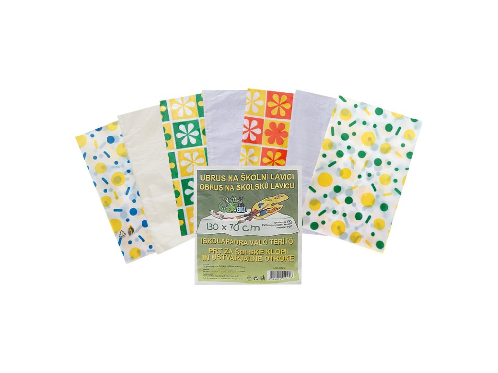 Obrus na výtvarnú výchovu, PVC, 130 x 70 cm. Náhodný výber vzoru, nemusí sa zhodovať so vzormi na foto.