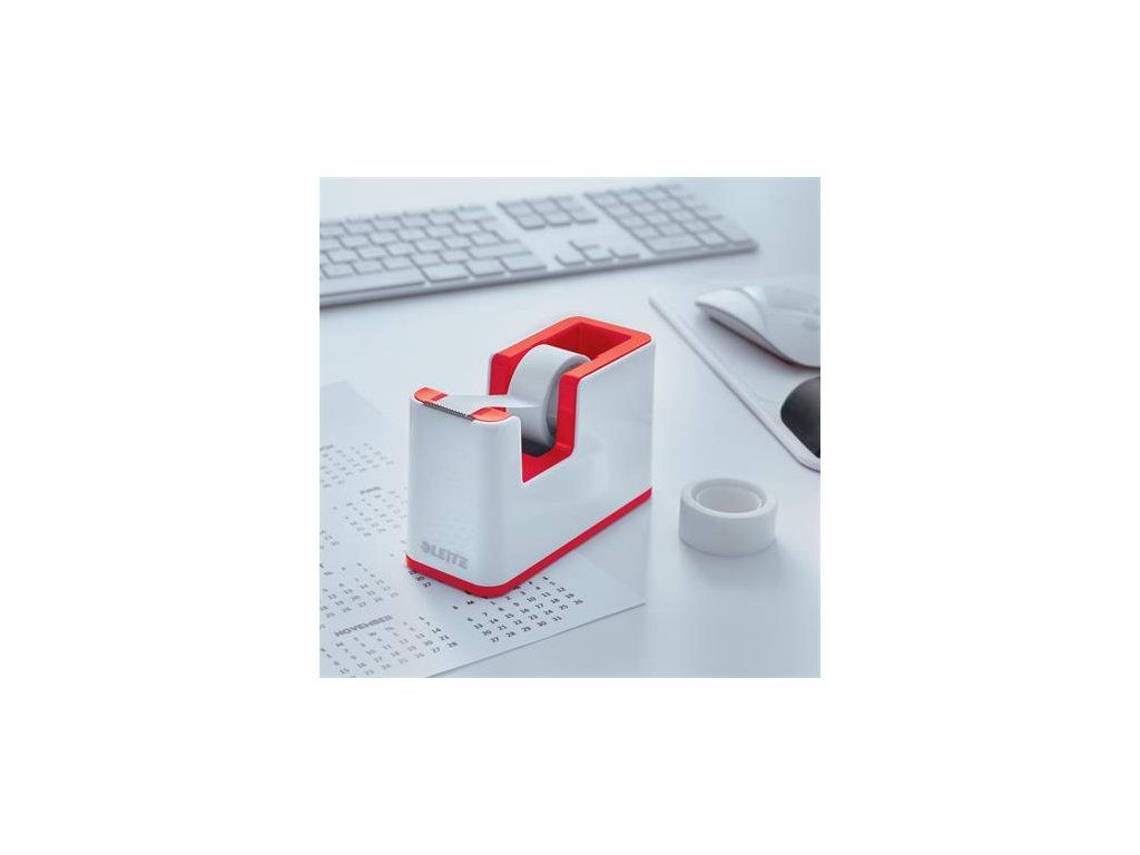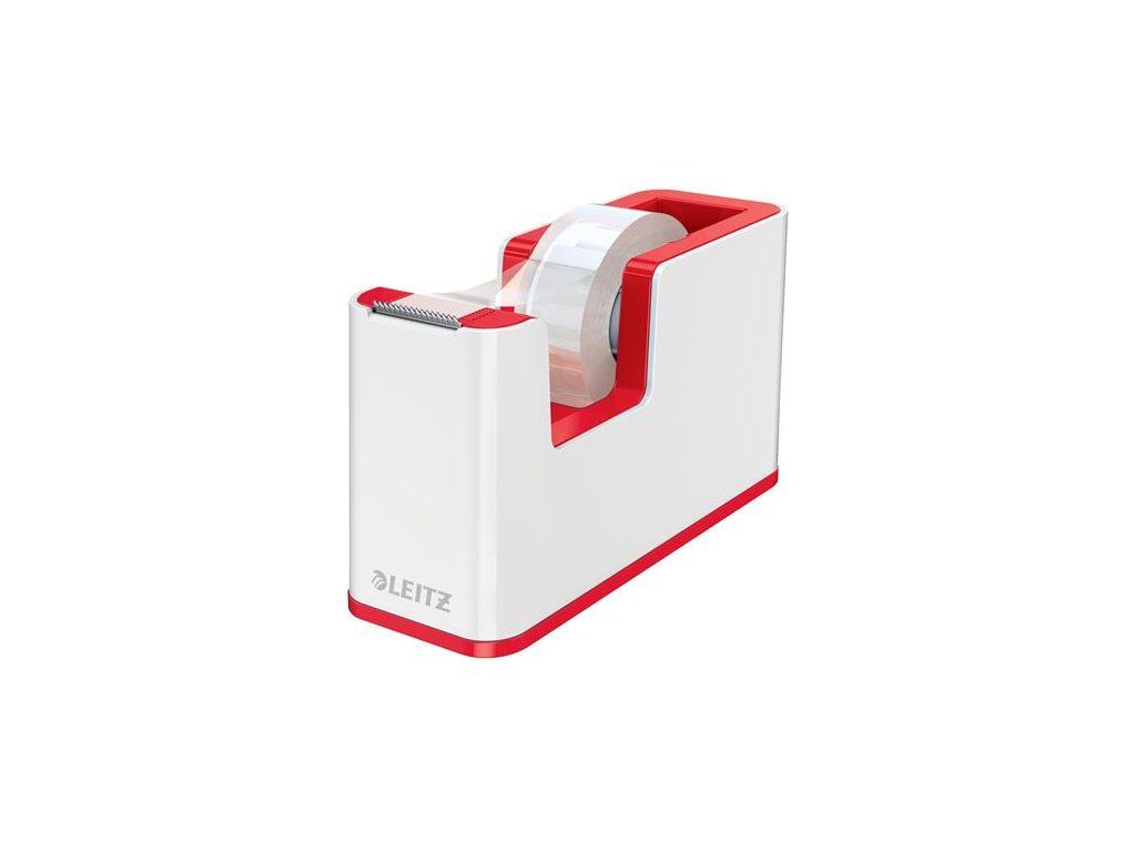 Odvíjač lepiacej pásky, stolový, naplnený, LEITZ "Wow", biela-červená