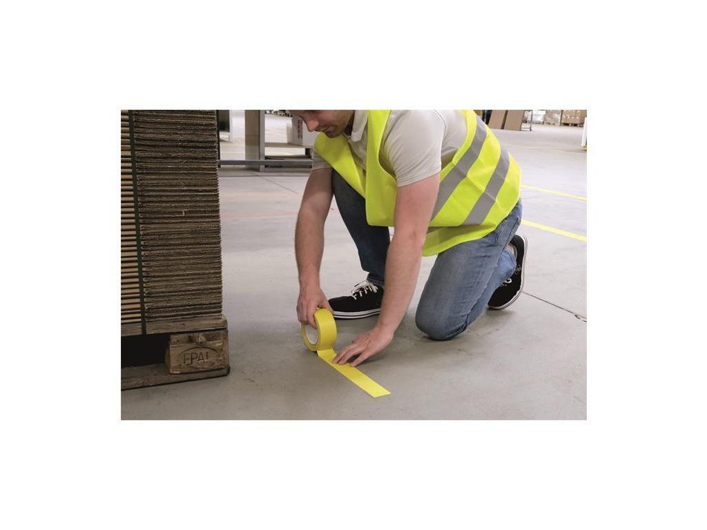 Samolepiaca podlahová označovacia páska na dočasné označenie a identifikáciu pevných alebo pohyblivých objektov a povrchov. Použitie gumového lepidla robí pásku z mäkkého PVC veľmi prispôsobivou.