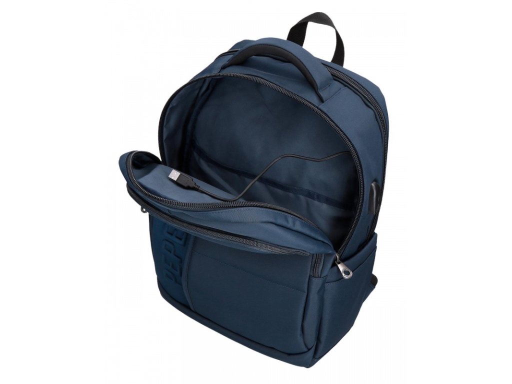 Hlavný priestor batohu je starostlivo navrhnutý, aby pojal všetky vaše nevyhnutnosti. Nájdete tu dve priehradky - polstrovanú priehradku na notebook s uhlopriečkou až 15,6 palca a ďalšiu priehradku ideálnu pre váš tablet. Vďaka tomu budú vaše elektronické zariadenia chránené a bezpečne uložené počas celého dňa.Pepe Jeans Ancor prichádza s inovatívnym integrovaným USB portom, ktorý vám umožní nabíjať vaše zariadenia aj na cestách. Jednoducho pripojte externú batériu a nabíjajte svoj smartphone alebo tablet, zatiaľ čo ste v pohybe. Žiadne ďalšie starosti s vybitou batériou!