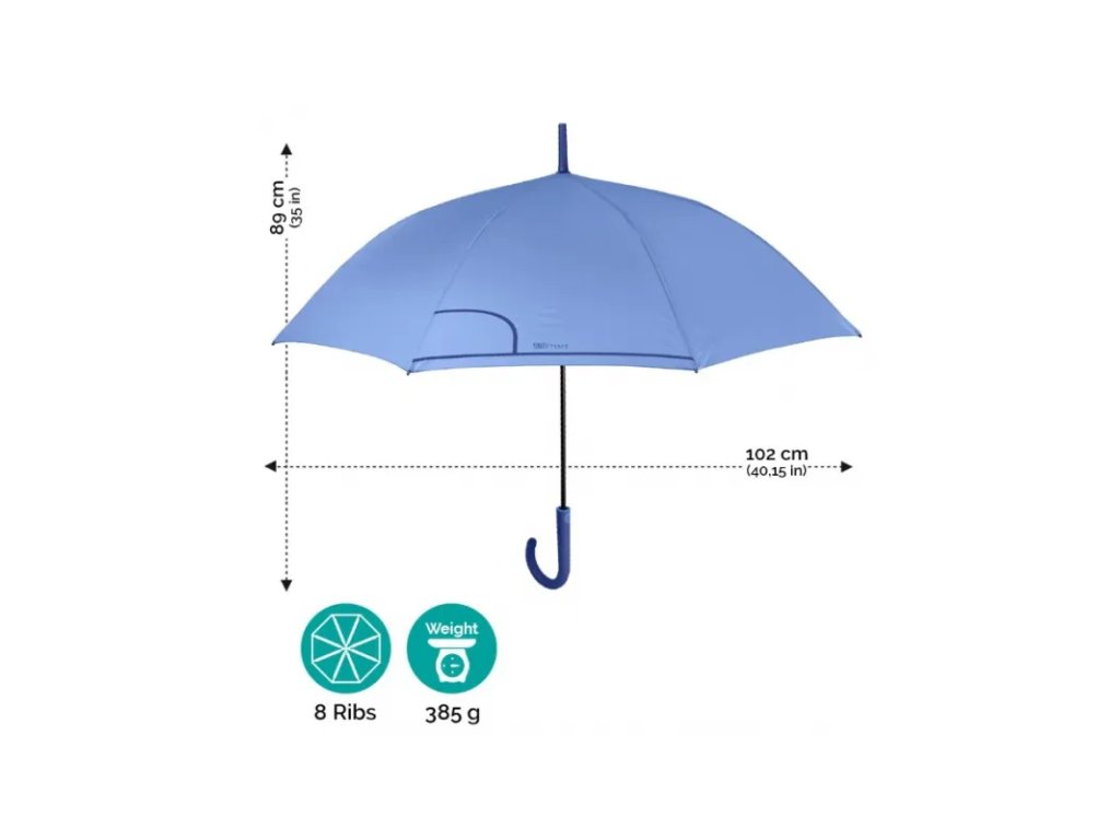• materiál: 100% polyester - tkanina je pevne tkaná a špeciálna vodoodpudivá živicová vrstva zabezpečuje mimoriadne rýchle schnutie dáždnika