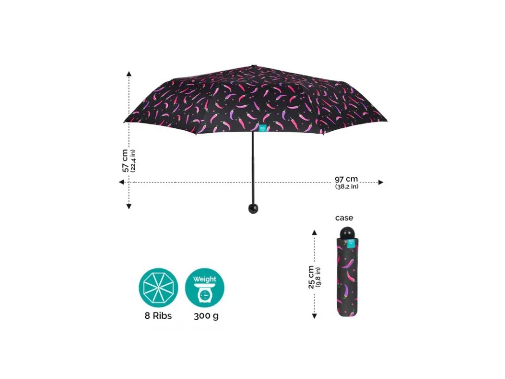 • priemer vystretého dáždnika je 97cm, váha 270g