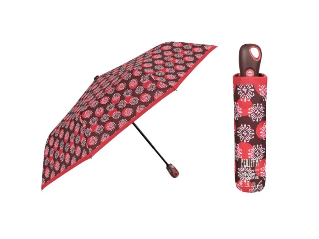 PERLETTI Dámský plnoautomatický dáždnik TECHNOLOGY Fiori / červená, 21723