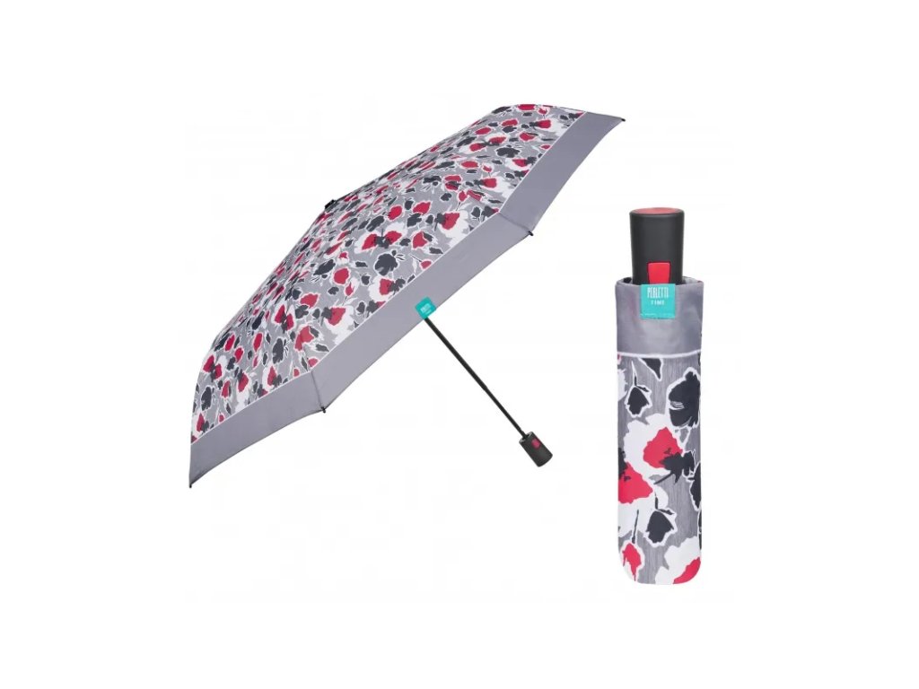 PERLETTI Dámsky skladací automatický dáždnik Floreale / šedý lem, 26308