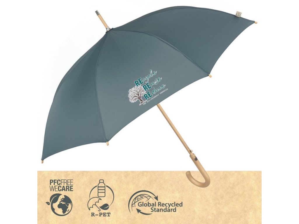 • tkanina RPET, pomocou ktorej sú dáždniky rady GREEN vyrobené, sa získava z recyklovaných plastových fliaš, najskôr rozdrobených a potom transformovaných na vysoko kvalitné vlákna