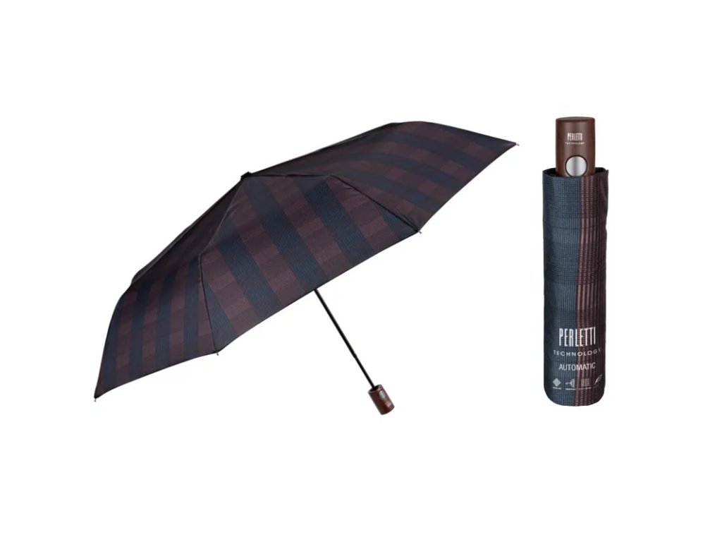 PERLETTI Pánsky automatický dáždnik TIME Scozzese / modro-hnedý, 21732