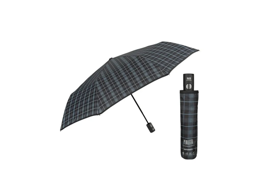 PERLETTI Pánsky automatický dáždnik TIME / tyrkysový prúžok, 21712