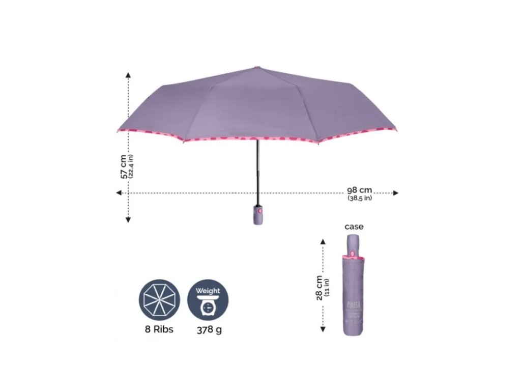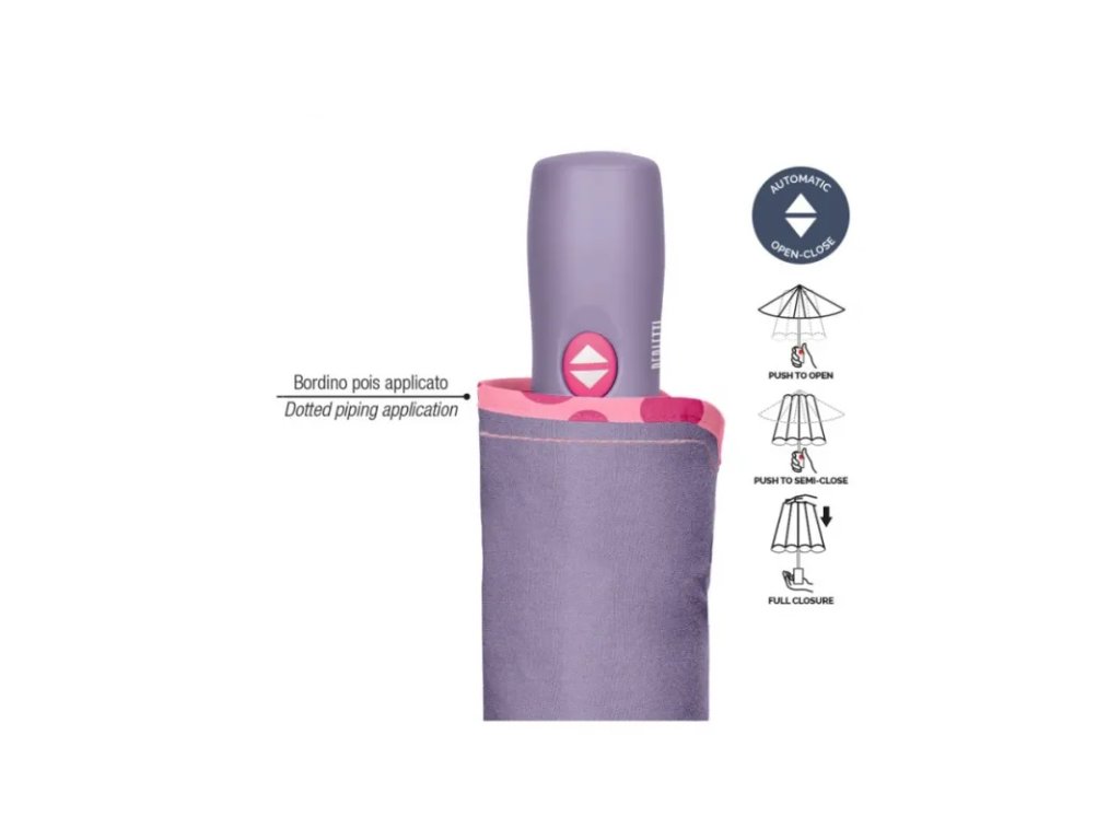 PERLETTI Technology Plnoautomatický skladací dáždnik Border / Lilla, 21715