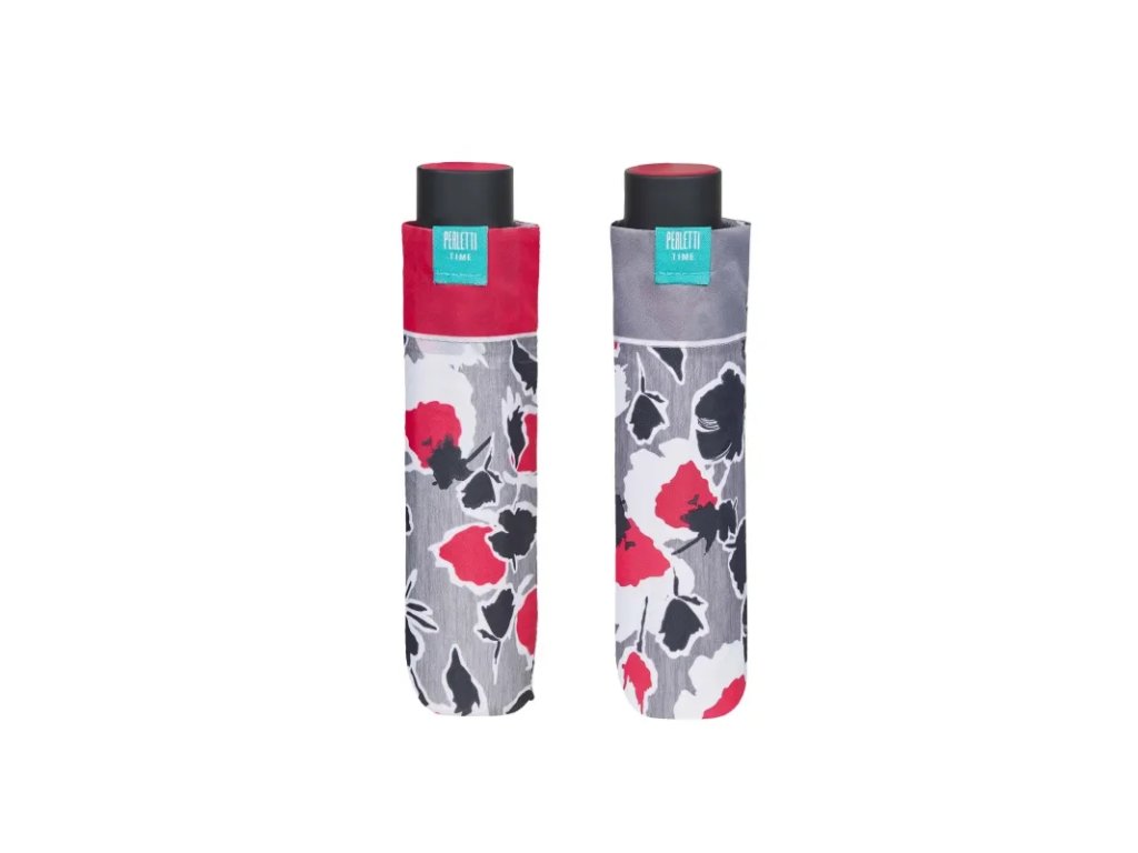 PERLETTI Time, Dámsky skladací dáždnik Floreale / červený lem, 26307