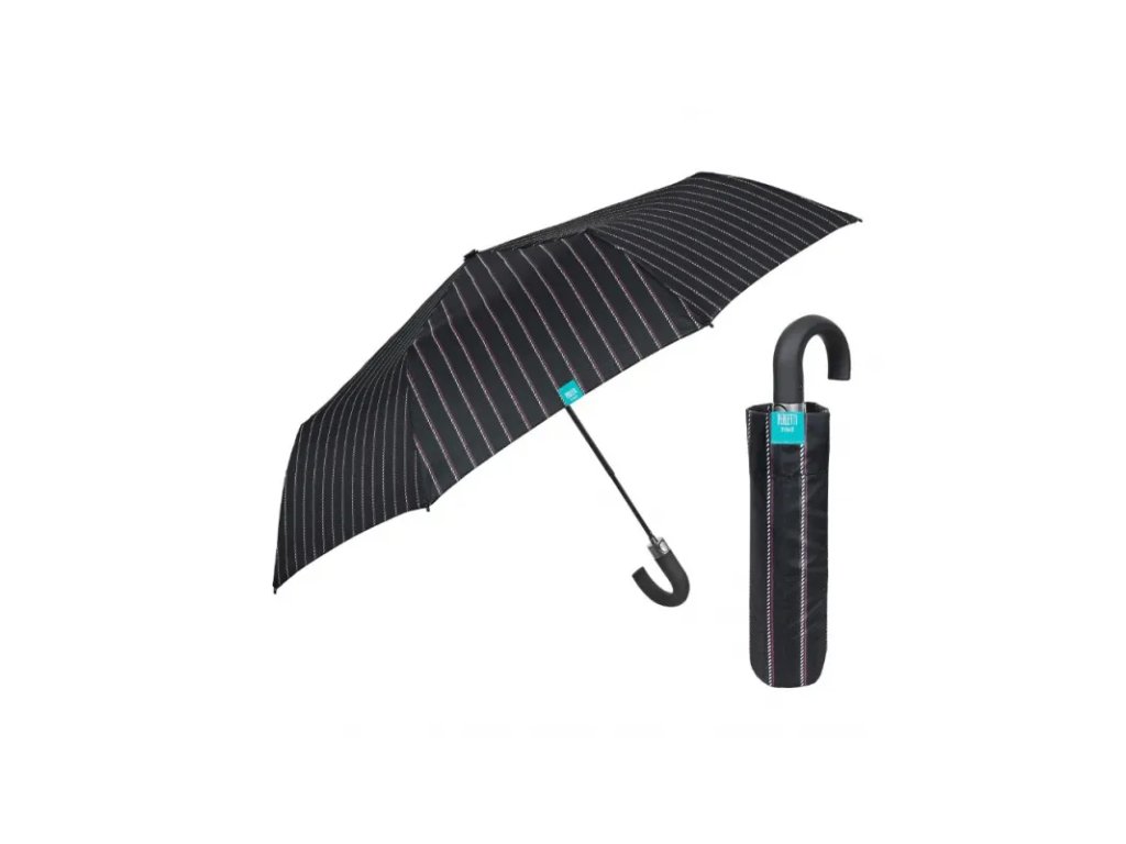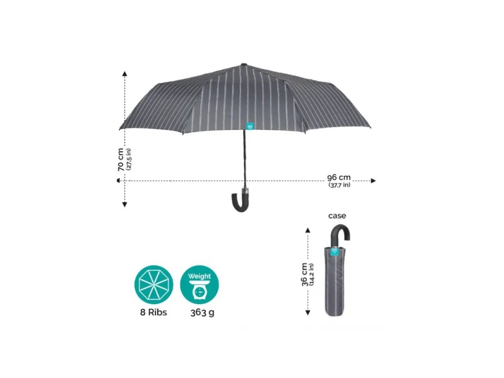 PERLETTI Time, Pánsky automatický skladací dáždnik Gessato / čierny, 26346