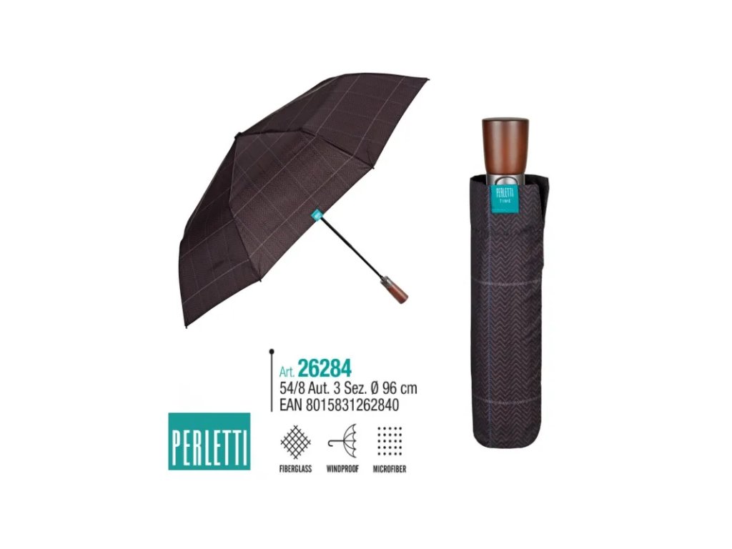 PERLETTI TIME Pánsky automatický dáždnik Scottish / hnedý tmavý, 26284