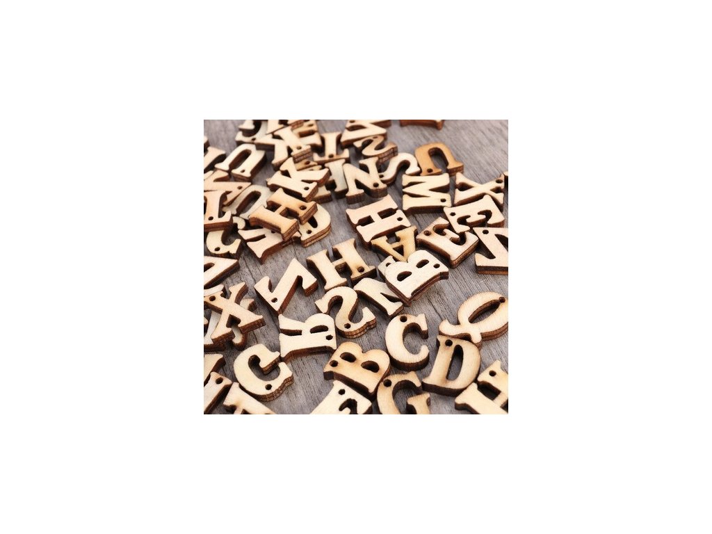 Sada drevených písmen A-Z. Vhodné na lepenie, maľovanie alebo navlečenie na šnúrku. Výška písmen 15 mm, hrúbka 4 mm, balenie 50 ks.