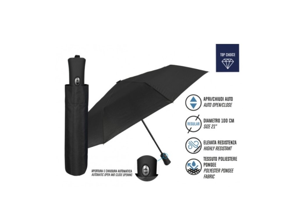 Plnoautomatický skladací dáždnik Perletti Promozionali, čierny, 96009-01