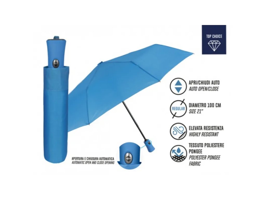 Plnoautomatický skladací dáždnik Perletti Promozionali, svetlomodrý, 96009-05