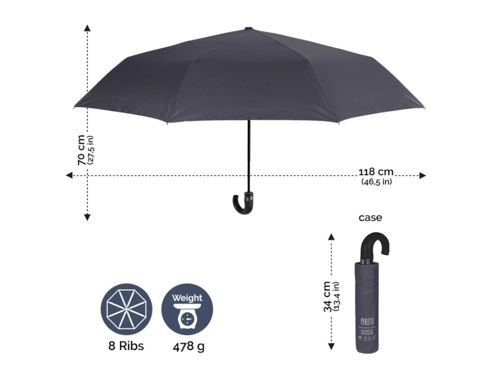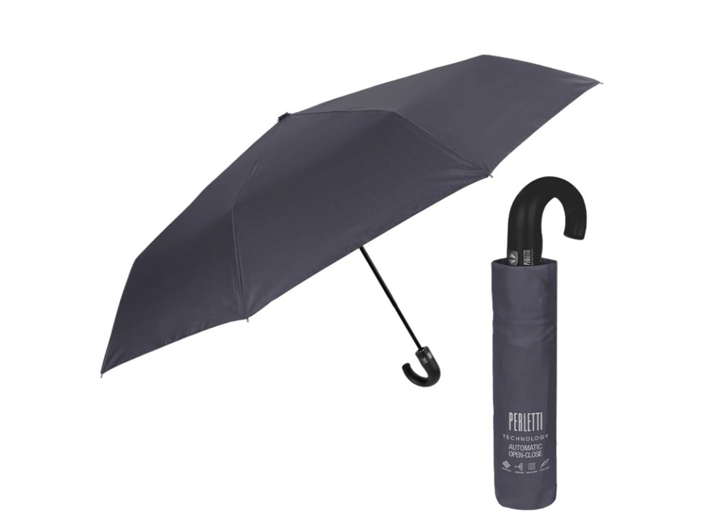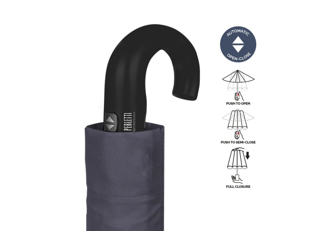 Plnoautomatický skladací dáždnik s rukoväťou Perletti Technology / sivý, 21788