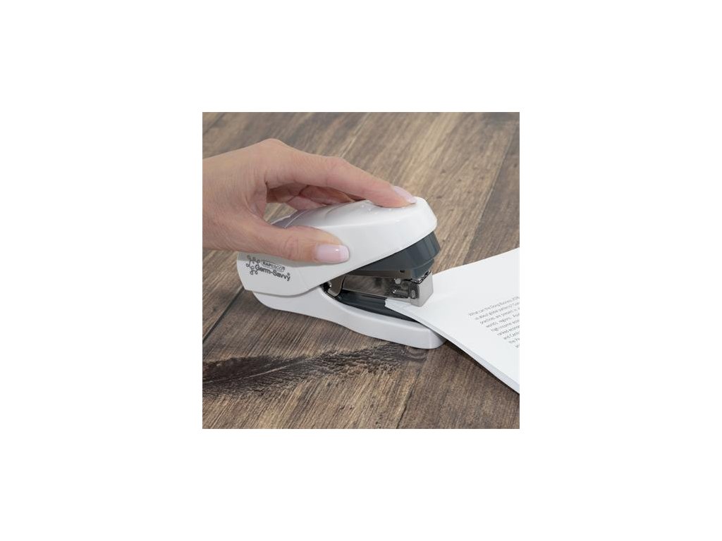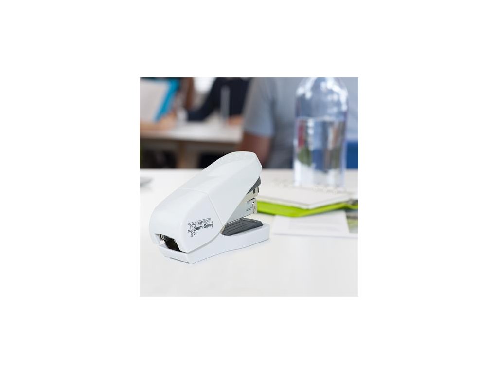 Praktický doplnok na každý stôl! -ošetrené antibakteriálnym aditívom (na báze iónov striebra a zinku), ktoré inhibuje a zabíja 99 % baktérií -materiál: vonkajší recyklovaný plast, kovová konštrukcia pre trvanlivosť - znížené vynaloženie sily: áno, vyžaduje o 60% menej úsilia vďaka technike plochého zošívania - spinky : 24/6 - kapacita listov: 35 listov(80gsm) - darček: 2 000 spiniek 24/6