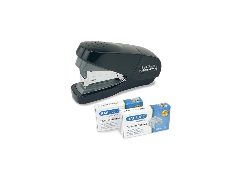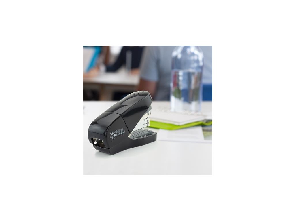 Praktický doplnok na každý stôl! -ošetrené antibakteriálnym aditívom (na báze iónov striebra a zinku), ktoré inhibuje a zabíja 99 % baktérií -materiál: vonkajší recyklovaný plast, kovová konštrukcia pre trvanlivosť - znížené vynaloženie sily: áno, vyžaduje o 60% menej úsilia vďaka technike plochého zošívania - spinky : 24/6 - kapacita listov: 35 listov(80gsm) - darček: 2 000 spiniek 24/6