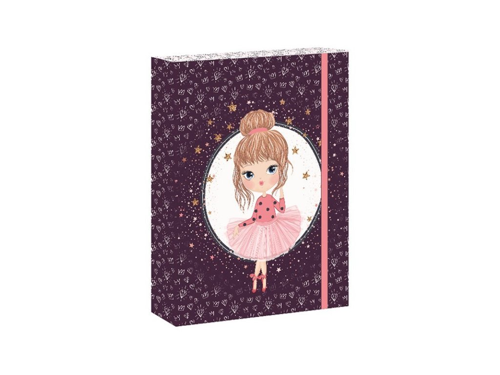 Školský box na zošity, formát A4, s motívom, zatváranie zaistené gumičkou, tvrdý karton. Rozmery: 23x33x3,5 cm.