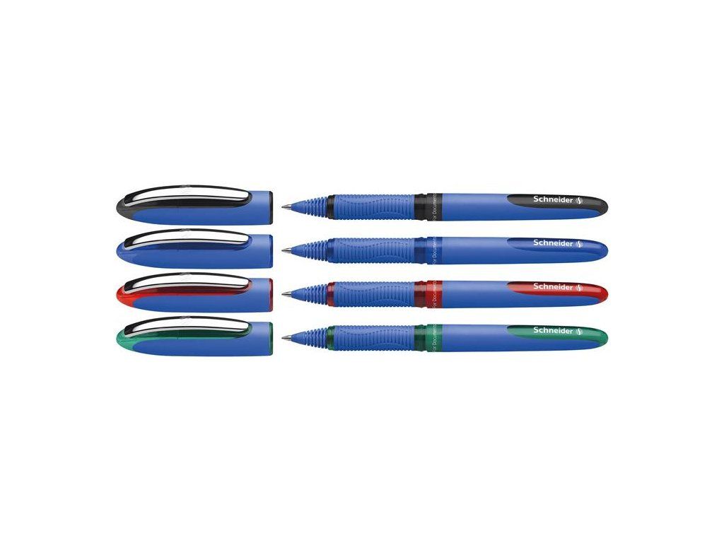roller s hybridným kuželovým hrotom kovový klip vodeodolný atrament pogumovaný ergonomický úchyt a telo pera veľká nádrž kovový hrot Super-Flow-System pre plynulé dávkovanie atramentu bez uzáveru nevyschne 2-3 dni balenie obsahuje 4 perá (čierne, modré, červené, zelené)Dodatočné parametre