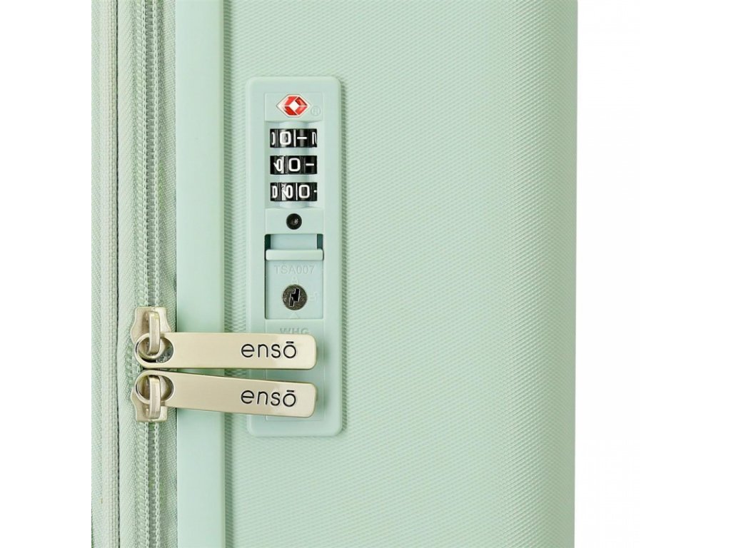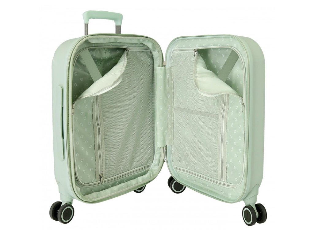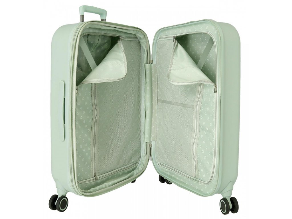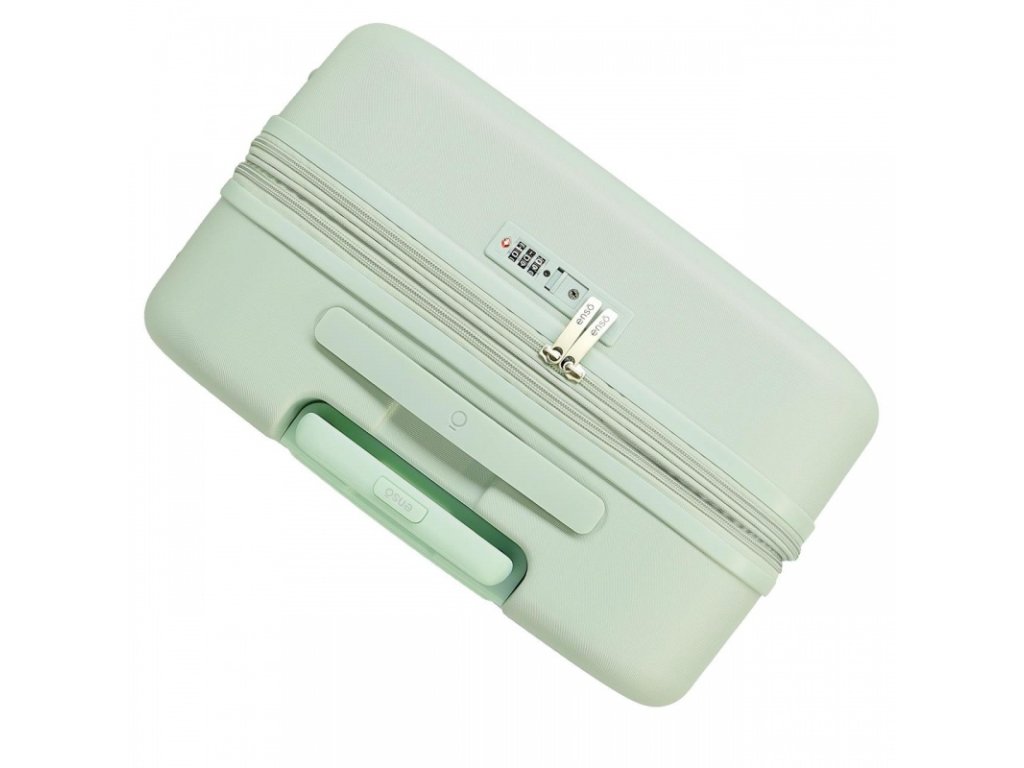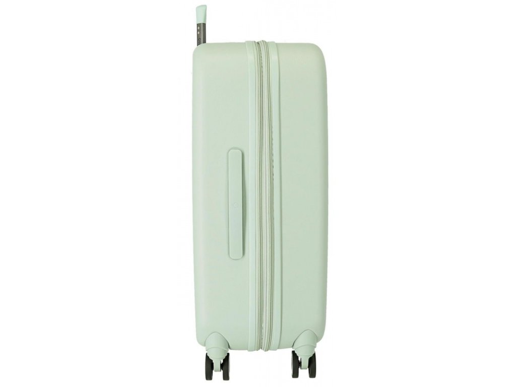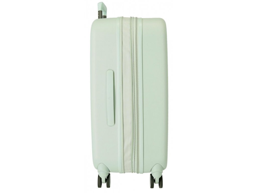 🔹 Elegantné pastelovo zelené prevedenie, ktoré dodáva kufrom jedinečný štýl.