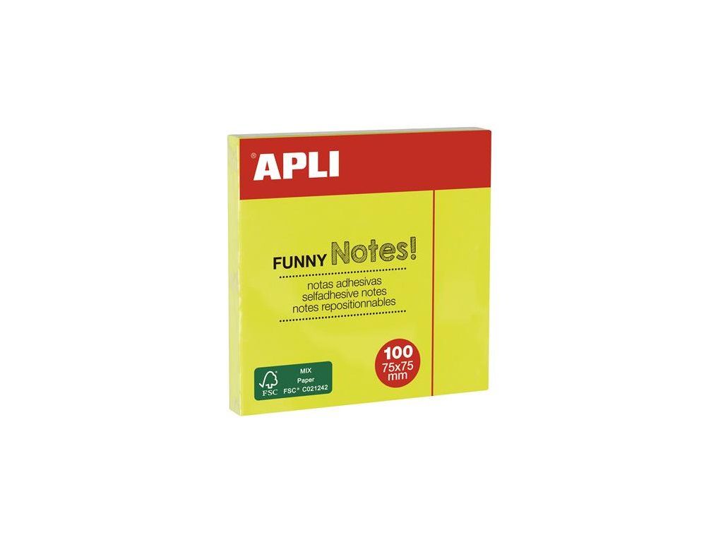 Samolepiaci bloček, 75x75 mm, 100 listov, APLI, neónový žltý