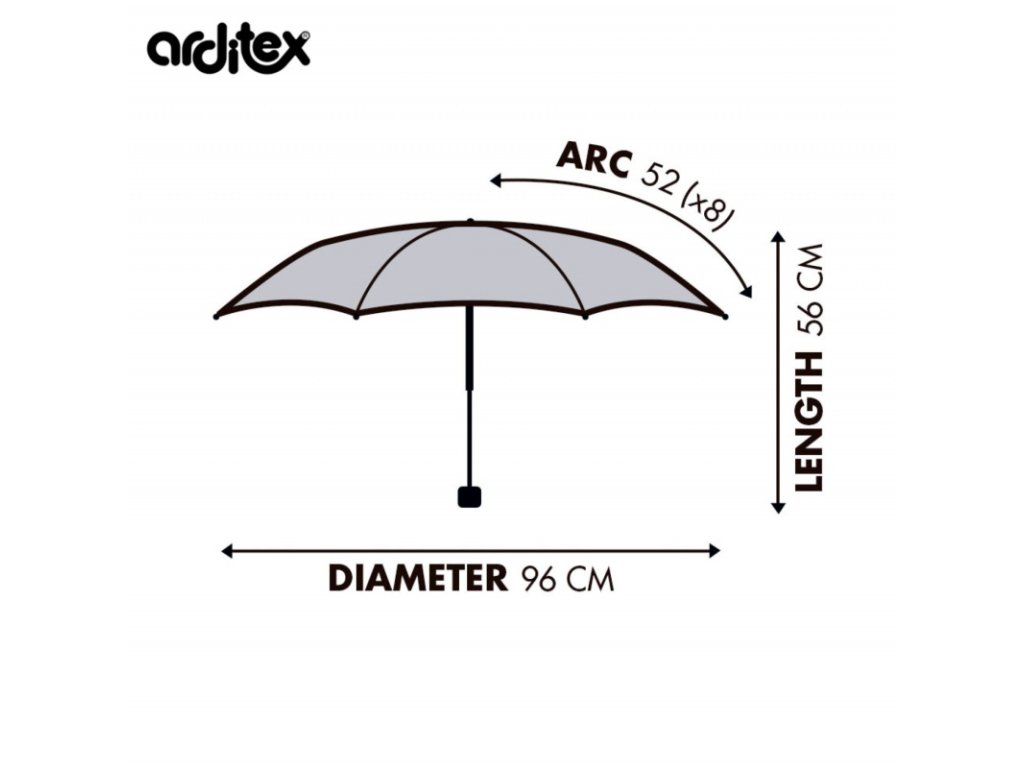 👉 Rozmery – priemer vystretého dáždnika je 96 cm, dĺžka 56 cm.