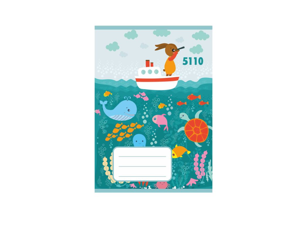 Školský zošit 511, formát A5, linajkový s pomocnou linkou, 10 listov, výška riadka 20 mm. Rôzne vzory na prednej strane, náhodný výber.