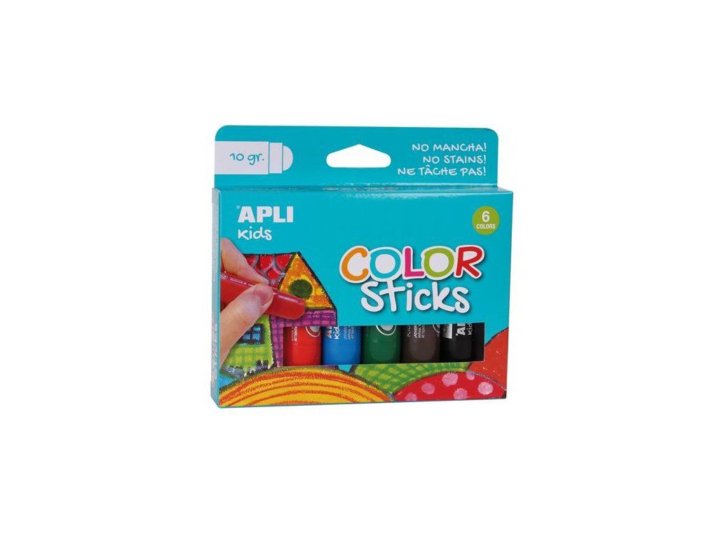 Tempera, tyčinka, APLI Kids "Color Sticks", 6 rôznych farieb