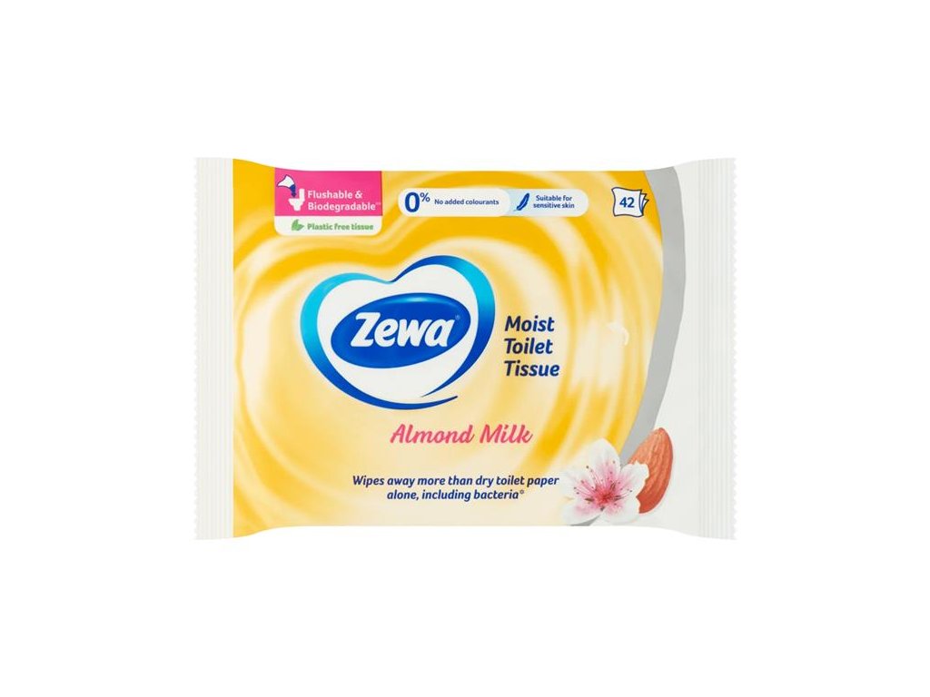 Zewa vlhčný toaletný papier s výťažkom z mandľového mlieka - neutrálne PH - s výťažkom z mandľového mlieka - s provitamínom B5 - biologicky ľahko rozložiteľné - dermatologicky testovanéDodatočné parametre