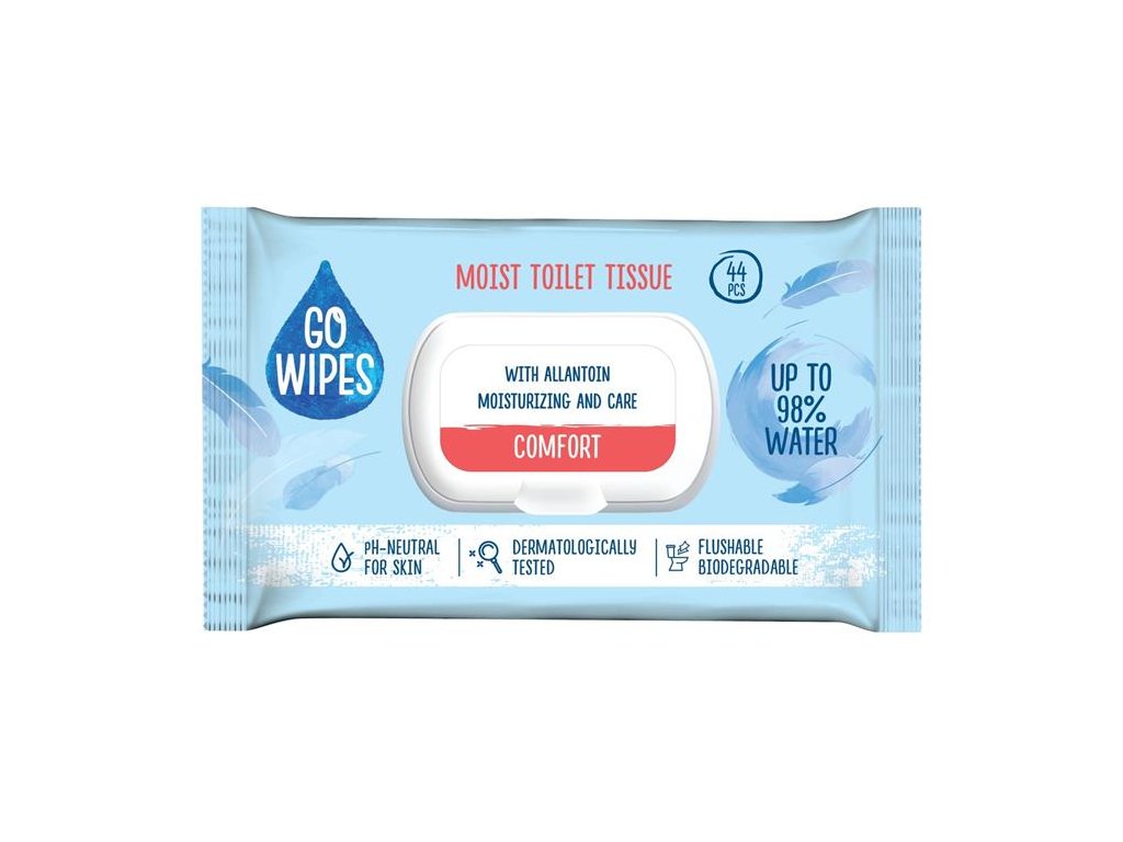 Vlhčený toaletný papier GoWipes Comfort v 44-kusovom balení je vďaka svojmu zloženiu šetrnému k pokožke, bez obsahu alkoholu, a možnosti splachovania ideálnou voľbou aj pre osoby s citlivou pokožkou. Jemne čistí, hydratuje a osviežuje, pričom poskytuje praktické a hygienické riešenie na každodenné používanie.