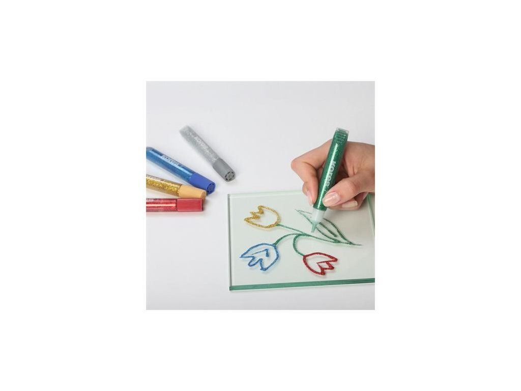 lepidlo na dekoračné účely 5 rôznych farieb: žltá, oranžová, ružová, modrá, fialová aplikátor pre precízne a čisté používanie nanášajte na povrch, ktorý chcete dekorovať a nechajte vyschnúť vhodné na povrchy: papier, kartón, moosguma, sklo, plast, textil neobsahuje toxické látky, bez kyseliny a rozpúšťadielDodatočné parametre