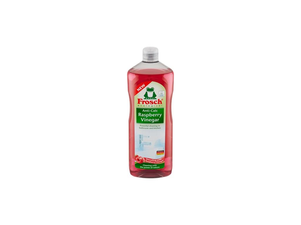 Frosch univerzálny čistiaci prostriedok s obsahom malinového octu zabezpečuje trvácnu a bezšmuhovú čistotu, odstraňuje vodný kameň, usadené nečistoty, napríklad zvyšky mydla, a vodné škvrny. Je vhodný na použitie na povrchoch v kúpeľni, kuchyni, ako aj na dlaždiciach.