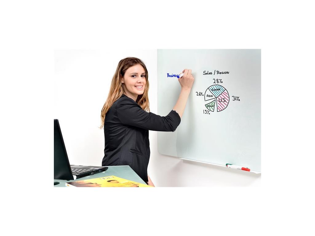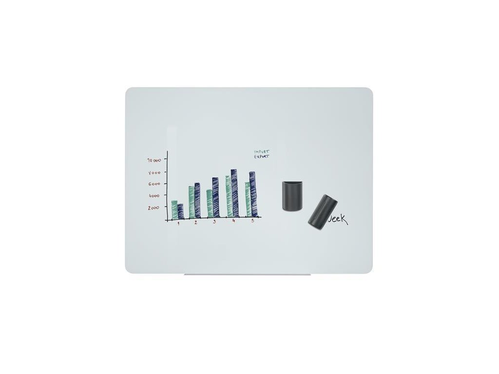 Stierateľná sklenená magnetická tabuľa so za sucha zotieratelným hladkým povrchom a 4 mm hrubým sklom. Balenie obsahuje kovový držiak na písacie potreby a doplnky pre montáž na stenu. Použiteľná so špeciálnymi a silnými magnetkami. Rozmery: 150x120 cm a garancia 25 rokov.