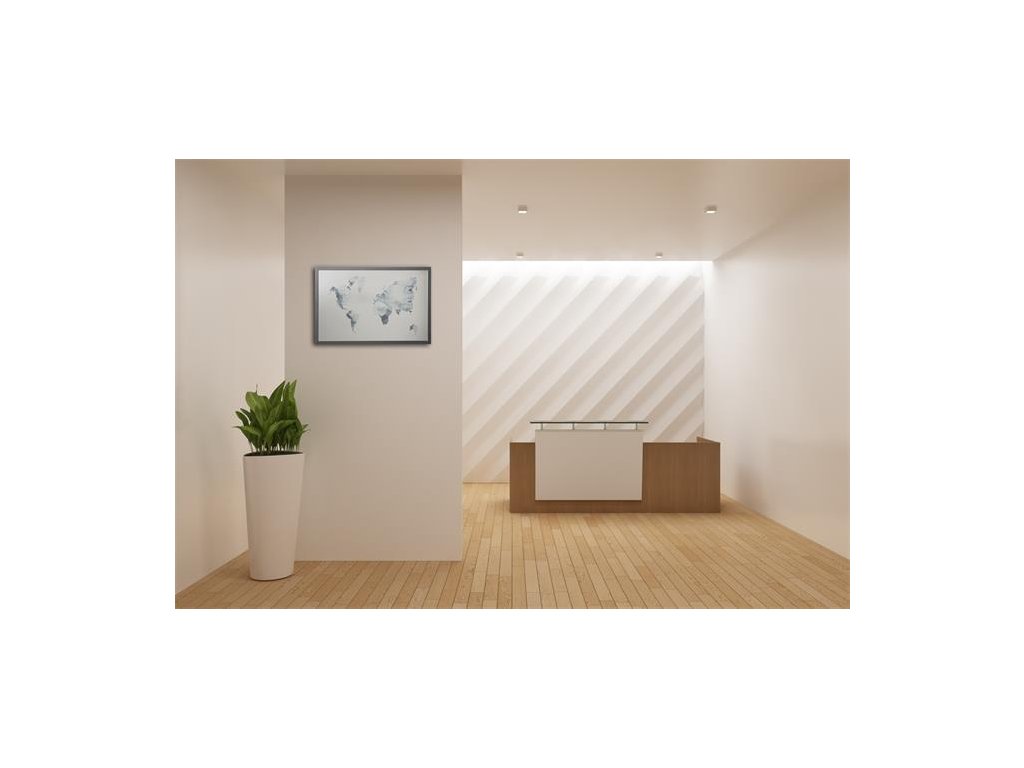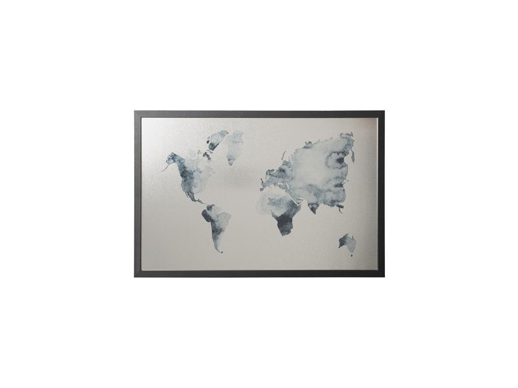 Victoria Visual odkazová tabuľa strieborná magnetická s dreveným rámom 60x40 cm "Mapa sveta"