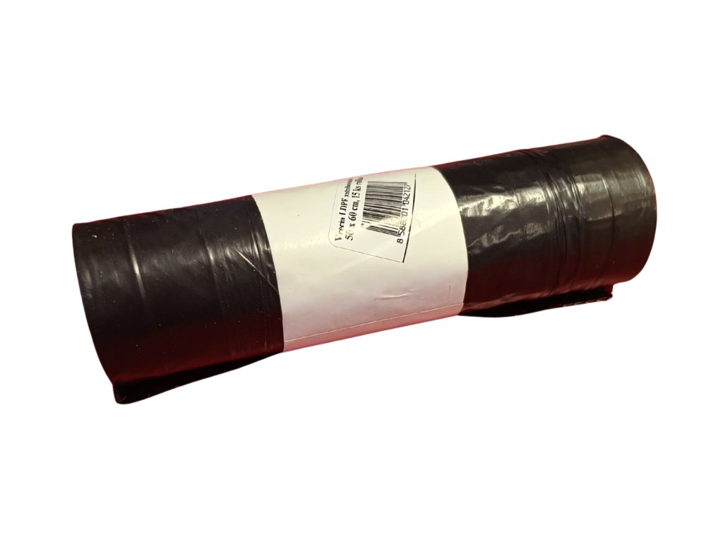 Vrecia na odpad, objem 30 litrov, rozmery 50x60 cm , rolka 15 ks, s praktickým zaťahovaním. Čierna farba, hrúbka 40 mikrónov, materiál LDPE.